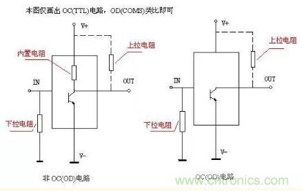 當(dāng)TTL電路驅(qū)動CMOS電路時,如果TTL電路輸出的高電平低于CMOS電路的最低高電平,這時就需要在TTL的輸出端接上拉電阻,以提高輸出高電平的值;OC門電路必須加上拉電阻,以提高輸出的高電平值。