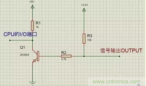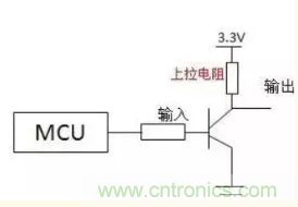 如下圖中的R5所示,上拉電阻使三極管基極的輸入電平在默認(rèn)情況下是高電平輸入,當(dāng)CPU有低電平信號輸出時,外圍電路響應(yīng),下拉電阻使晶體管的基極輸入在默認(rèn)情況下拉到低電平,如下圖中的R6所示。