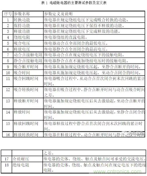 為保證繼電器的質(zhì)量,表1所列參數(shù)都應(yīng)嚴(yán)格進(jìn)行測(cè)試,但其中有些參數(shù)的測(cè)試特別需要引起我們的注意。