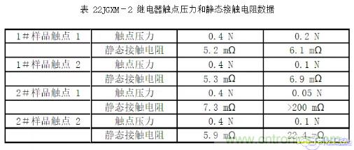 由表2數(shù)據(jù)可以得知,隨著觸點(diǎn)壓力的衰退,觸點(diǎn)間的靜態(tài)接觸電阻明顯變大。