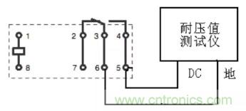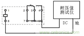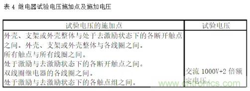 介質(zhì)耐壓(俗稱(chēng)打高壓)是考核繼電器的殼體、繞阻、觸點(diǎn)及觸點(diǎn)間在規(guī)定的時(shí)間內(nèi)承受規(guī)定交流電壓的能力。而絕緣電阻是考核繼電器的殼體、繞阻、觸點(diǎn)及觸點(diǎn)間在效加規(guī)定直流電壓的條件下體現(xiàn)出來(lái)的絕緣電阻。國(guó)軍標(biāo)規(guī)定的試驗(yàn)電壓施加點(diǎn)見(jiàn)表4。