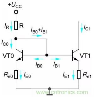 當(dāng)Re0=Re1時(shí),IC1仍然等于IR,但此電路的IR由式(2-4)約定,比式(2-2)的IR小,一般用于前置放大器的輸入級(jí)。