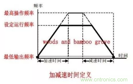 減速時(shí)間是指變頻器從【最高操作頻率】減速到【輸出最低頻率】所需時(shí)間。