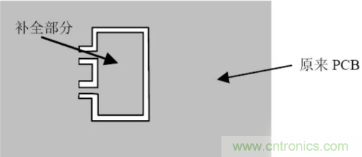 不規(guī)則形狀且沒拼板的PCB 應加工藝邊。若PCB 上有開孔大于等于5mm×5mm的地方,在設(shè)計時要先將孔補全,以避免焊接時造成漫錫和板變形,補全部分和原有的PCB 部分要以單邊幾點連接,在波峰焊后將之去掉(見圖3.2)
