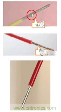 浸錫就是將金屬表面沾上一層錫,防止氧化,方便焊接。時(shí)至今日,浸錫在連接器行業(yè)中仍是廣泛應(yīng)用,浸錫的好壞直接影響到產(chǎn)品的性能及使用壽命。我們都知道導(dǎo)體的電阻在電流的作用下會(huì)發(fā)熱,電流越大發(fā)熱量也就越高,浸錫工藝可以將一根一根細(xì)導(dǎo)線(xiàn)間的空氣用錫填滿(mǎn)從而減少發(fā)熱量。同時(shí)由于多股導(dǎo)線(xiàn)容易散,直接壓在接線(xiàn)端子上時(shí),接觸面積會(huì)減少,所以很多廠(chǎng)家選擇浸錫的方式,以免接觸不良發(fā)熱燒壞。浸錫標(biāo)準(zhǔn)比較嚴(yán)格,需均勻,平滑,厚度0.05~0.1mm,不能有錫尖,凸錫球,漏錫,堆疊,變形等情況發(fā)生,否則反而會(huì)加大接觸電阻,增加發(fā)熱量。