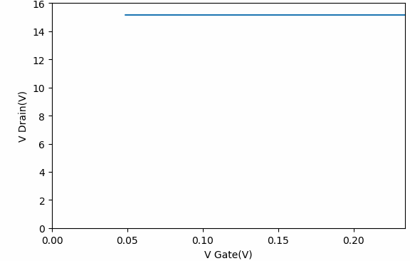 對(duì)于IRF450的擊穿電壓測(cè)試曲線,當(dāng)電壓超過(guò)600V的時(shí)候,漏極電流激增。這與該期間的數(shù)據(jù)手冊(cè)上標(biāo)稱(chēng)的耐壓基本相當(dāng)。