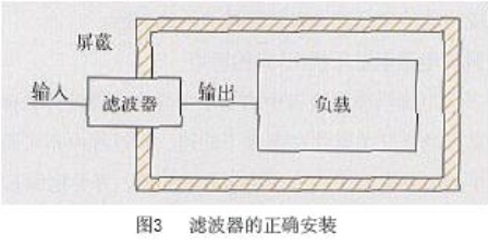 b.濾波器的輸入和輸出線必須分開,防止輸入端與輸出端線路耦合,降低濾波特性,通常利用隔板或底盤來固定濾波器。若不能實施隔離方法,則采用屏蔽引線。