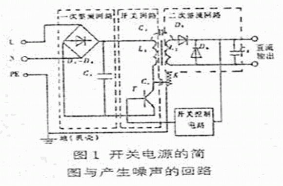 開(kāi)關(guān)電源利用半導(dǎo)體器件的開(kāi)和關(guān)工作,并以開(kāi)和關(guān)的時(shí)間比來(lái)控制輸出電壓的高低,由于其通常工作在20KHz以上的開(kāi)關(guān)頻率工作,開(kāi)關(guān)電源內(nèi)的dv/dt、di/dt很大,產(chǎn)生嚴(yán)重的浪涌電壓、浪涌電流和其它各種噪聲。圖1是典型的開(kāi)關(guān)電源的簡(jiǎn)圖和產(chǎn)生噪聲的回路,含有大量高次諧波的噪聲通過(guò)閉臺(tái)回路向空間輻射電磁能量,即差模電流的輻對(duì)干擾。通常的閉合環(huán)形回路的形狀都是不規(guī)則的,這里我們只討論一般的模型,如圖2所示。
