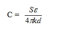 (7)上式中,電容C的單位為法拉,ε為介電常數(shù)(在真空中為1),S為帶電物體與參照物體之間電力線互相照射的面積(與電場垂直,單位米2),在國際單位制中k = 9×109牛頓•米2/庫侖2,d為帶電物體到參照物的有效距離(單位米)。