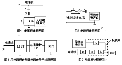 國(guó)際曾有人建議對(duì)小型電子設(shè)備采用類似于CLSPRl4一l(對(duì)應(yīng)的我國(guó)國(guó)家標(biāo)準(zhǔn)是GB4343—l《家用和類似用途電動(dòng)、電熱器具、電動(dòng)工具以及類似電路的無(wú)線電干擾特性的測(cè)量方法和允許值》)中所提供的吸收鉗(或稱為功率探針、鐵氧體鉗)方法來(lái)測(cè)試EUT對(duì)外的輻射功率。利用吸收鉗可以測(cè)量5MHz—300MHz的傳導(dǎo)干擾功率。采用此法的前提是EUT尺寸較小,其輻射到空間的能量主要是通過(guò)EUT的電源線等逸出的。因此,對(duì)這部分能量的測(cè)量可以用一個(gè)環(huán)繞電源線的吸收裝置來(lái)實(shí)現(xiàn)。這個(gè)吸收裝置便被稱為吸收鉗。這個(gè)方法的優(yōu)點(diǎn)是簡(jiǎn)便易行,對(duì)環(huán)境要求不高,在屏蔽室里便可進(jìn)行,而且測(cè)試結(jié)果有很好的重復(fù)性和可比性。電壓、電流傳導(dǎo)干擾可分別由電壓探針和電流探針測(cè)出。圖4、圖5分別為電壓探針和電流探針原理圖。圖6為電流探針測(cè)量電流傳導(dǎo)干擾原理圖。功率探針原理見圖7。