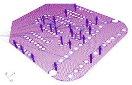 隨著當今集成電路對供電穩(wěn)定性的要求,印制板設計工程師需要關注于低電壓、低翻轉門限與大電流、多層長線供電所造成的壓降。利用CST電磁工作室的穩(wěn)恒電流求解器可以仿真整個PCB的電壓分布,如圖15所示: