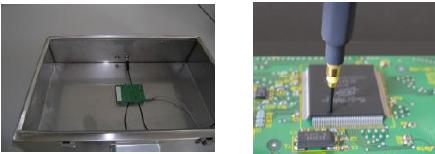 表面掃描法通過測量集成電路表面電場和磁場的方法來描述集成電路的電磁發(fā)射特性。該方法的測量頻率范圍可達(dá)10MHz—3GHz,測量采用電場探頭或磁場探頭按一定順序掃過集成電路表面,由接收機(jī)將相應(yīng)的測量結(jié)果依次傳送給計(jì)算機(jī)處理。測試結(jié)果的準(zhǔn)確性與電場或磁場探頭的特性和探頭定位裝置的精度有關(guān)。該方法可用于探測集成電路芯片上不同部位的電磁發(fā)射分布情況,適用于對(duì)集成電路的不同設(shè)計(jì)方案的電磁發(fā)射特性的比較。