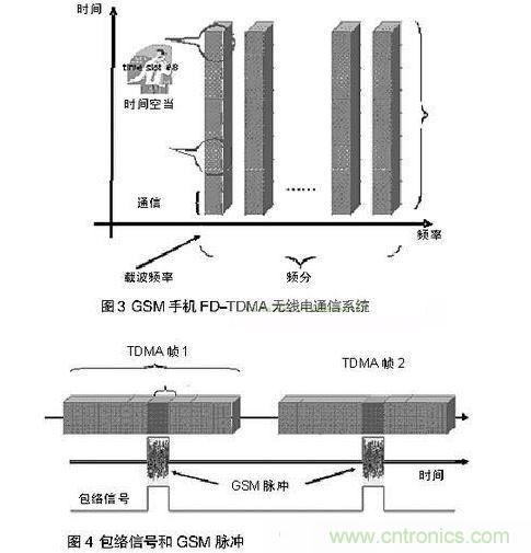 GSM(全球通)手機(jī)標(biāo)準(zhǔn)使用頻分多路傳輸和時(shí)分多路傳輸,同時(shí)傳送大量電話(huà),如圖3所示。