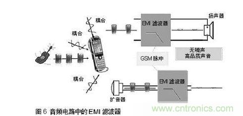 在音頻電路中如有電磁干擾(EMI),會(huì)出現(xiàn)嘶嘶、噼啪、嗡嗡等聲音,聲音質(zhì)量很差。手機(jī)用戶(hù)無(wú)法忍受這樣的干擾。因此,必須設(shè)法過(guò)濾音頻電路的電磁干擾。