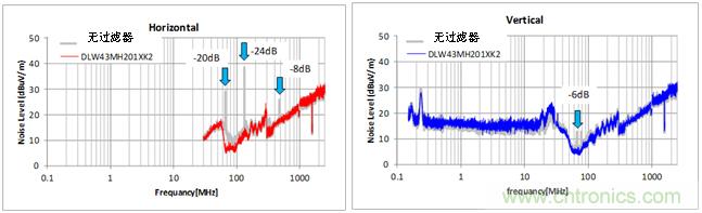圖5:CAN中DLW43SH和DLW32SH系列的噪聲控制效果