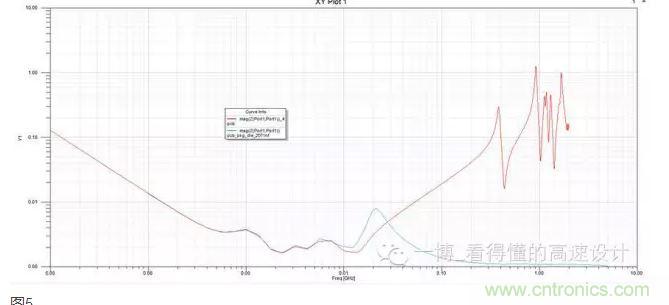 第四條,封裝電容和Die電容這里不做太多描述,只給出一個實際案例,圖5是某芯片,Die電容大小為2071NF。能看到Die電容起作用之后,30M以上的PDN阻抗基本完全被壓下來了。也就是說,30M以上的電源噪聲,進(jìn)入芯片之后被Die電容濾除。系統(tǒng)設(shè)計時不需要考慮這個頻段以上的濾波。