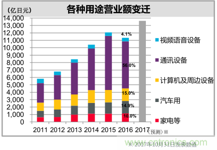 圖:村田各用途產(chǎn)品銷售額占比