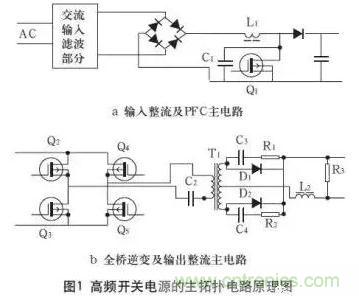 高頻開關(guān)電源的主拓?fù)潆娐吩?,如圖1所示。