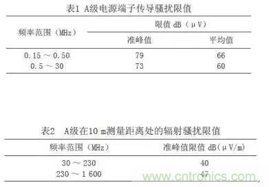 根據(jù)鐵路客運專線標(biāo)準(zhǔn)規(guī)定,傳導(dǎo)騷擾限值和輻射騷擾限值如表1、2所示。