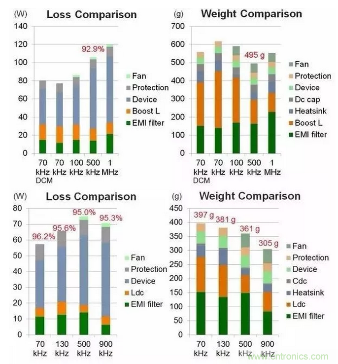 2、慎重選擇開(kāi)關(guān)頻率,開(kāi)關(guān)頻率會(huì)極大的影響整個(gè)變化器的功率密度,而且針對(duì)不同器件,拓?fù)?,最佳的開(kāi)關(guān)頻率是變化的。