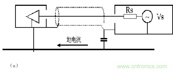 當(dāng)許多相互連接的設(shè)備體積很大(設(shè)備的物理尺寸和連接電纜與任何存在的干擾信號的波長相比很大)時,就存在通過機殼和電纜的作用產(chǎn)生干擾的可能性。當(dāng)發(fā)生這種情況時,干擾電流的路徑通常存在于系統(tǒng)的地回路中。