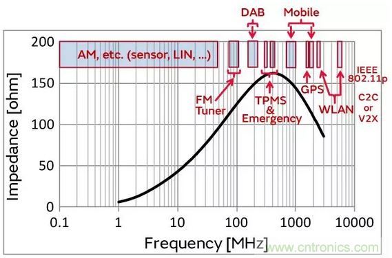 這個(gè)頻帶包括,一直以來使用的AM無線頻帶150kHz和搭載多個(gè)GHz頻帶無線的汽車音響娛樂設(shè)備的6GHz頻帶。