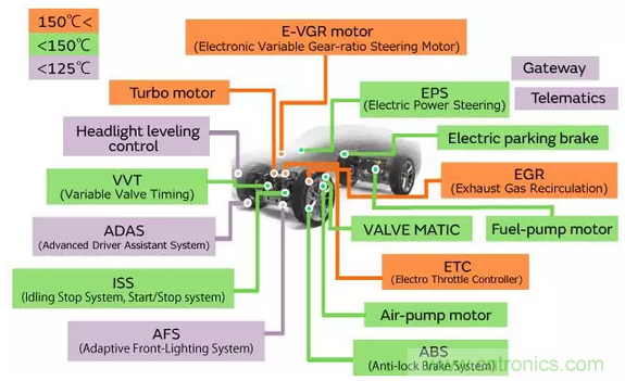 隨著汽車的輕量化、小型化,在引擎箱附近以及容易發(fā)熱的地方,越發(fā)需要能夠保證超過125℃的耐高溫元件。