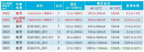 適合0603 inch (1608 mm)尺寸/對應(yīng)最大4A的電源線的靜噪對策