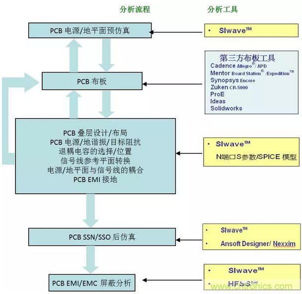 ANSYS的電磁仿真環(huán)境,由ANSYS工具與第三方EDA工具的接口AnsoftLinks,PCB電磁場仿真工具SIwave,三維高頻結(jié)構(gòu)全波電磁場仿真工具HFSS,信號完整性電路仿真分析工具Designer SI,電磁兼容自動優(yōu)化模塊PI Advisor組成。