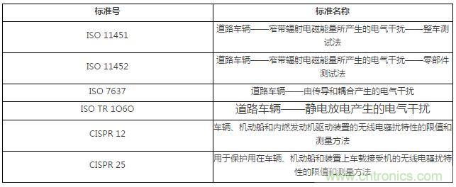國(guó)際汽車EMC標(biāo)準(zhǔn)