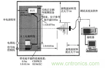 圖4:CISPR25標(biāo)準(zhǔn)要求的輻射發(fā)射測試布置圖