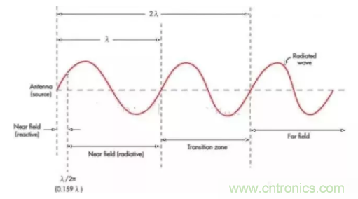 對(duì)近場(chǎng)似乎還沒(méi)有正式的定義,它取決于應(yīng)用本身和天線。通常,近場(chǎng)是指從天線開(kāi)始到1個(gè)波長(zhǎng)(λ)的距離。波長(zhǎng)單位為米,公式如下: