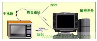電磁干擾(Electromagnetic Interference),簡(jiǎn)稱EMI,有傳導(dǎo)干擾和輻射干擾兩種。傳導(dǎo)干擾主要是電子設(shè)備產(chǎn)生的干擾信號(hào)通過(guò)導(dǎo)電介質(zhì)或公共電源線互相產(chǎn)生干擾;