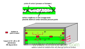 d、屏蔽體的電連續(xù)性是影響結(jié)構(gòu)件屏蔽效能最主要的因素,相對(duì)而言,一般材料本身屏蔽性能以及材料厚度的影響是微不足道的(低頻磁場(chǎng)例外);