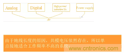d、接地:同類電路單獨(dú)分布地,在單板上單點(diǎn)相連
