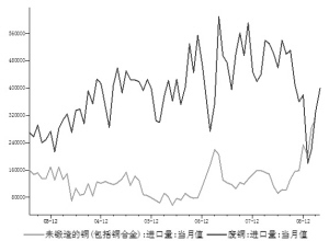 對(duì)于今年進(jìn)口量的預(yù)測(cè),分析人士大都保持比較謹(jǐn)慎的態(tài)度。“今年我國(guó)精煉銅的進(jìn)口增加幅度可能保持在10%左右。”某業(yè)內(nèi)人士表示,銅的需求是跟著GDP走的,一般需求會(huì)略高于GDP增幅。