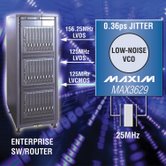 MAX3627和MAX3629具有優(yōu)異的電源噪聲抑制(PSNR),能夠最大程度地減小嘈雜電源對抖動性能的影響,使系統(tǒng)整體抖動指標的劣化最小,提高系統(tǒng)時鐘設計的質量,同時也節(jié)省了電路板空間和成本。MAX3627/MAX3629可理想用于以太網接口,例如:企業(yè)交換機、路由器及其它需要低抖動以太網時鐘的高速數據通信系統(tǒng)等。