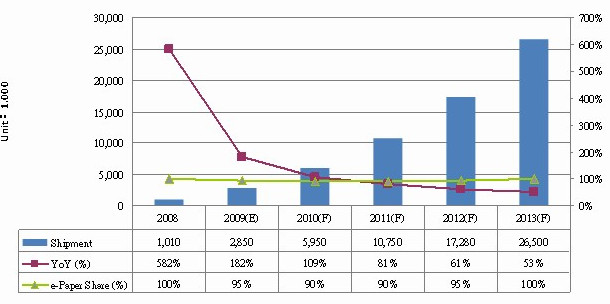 面對(duì)日漸增長(zhǎng)的電子書市場(chǎng),柏德葳表示,未來(lái)將隨來(lái)自不同領(lǐng)域的廠商投入而出現(xiàn)明顯增長(zhǎng),以2008、2009年為例,市場(chǎng)由Amazon及Sony兩大廠商所盤據(jù),總市占率逾70%,但2009年市場(chǎng)總出貨量不到300萬(wàn)臺(tái),隨著2010年更多廠商投入,成本隨之下滑,電子閱讀器市場(chǎng)將開始明顯增長(zhǎng)。