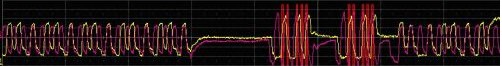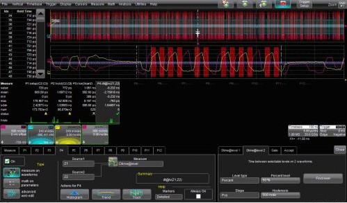 WaveScan把測(cè)量過濾中所有符合測(cè)量標(biāo)準(zhǔn)的波形累積起來形成掃描疊加的軌跡圖(圖2中間的軌跡)。這幅余輝圖包含了全部捕獲的歷史波形軌跡。我們現(xiàn)在就可以對(duì)被選擇出來的整個(gè)波形組在掃描疊加軌跡圖上應(yīng)用測(cè)量參數(shù)進(jìn)行測(cè)量。你也可以在被選擇波形的縮放軌跡上應(yīng)用測(cè)量參數(shù)進(jìn)行測(cè)量。