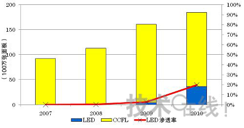 DisplaySearch發(fā)布的最新一期《季刊 配備LED背照燈的TFT LCD供貨調(diào)查報告》顯示,2009年配備LED背照燈的液晶電視面板供貨量大約達(dá)到了400萬張。