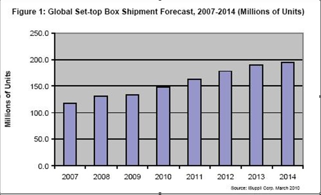 - 2010年全球總體機頂盒出貨量將達到1.478億個