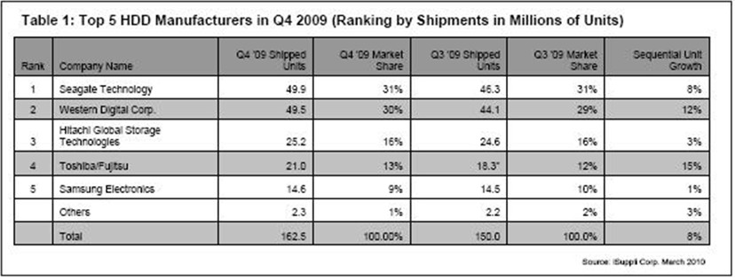 這些數(shù)據(jù)足以讓希捷2009年第四季度在硬盤出貨量和營(yíng)業(yè)收入方面均繼續(xù)排名第一。