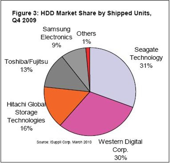 2009年第四季度希捷保持全球最大硬盤(HDD)廠商的排名,抵擋住了長(zhǎng)期排名第二的西部數(shù)據(jù)的強(qiáng)力挑戰(zhàn)。