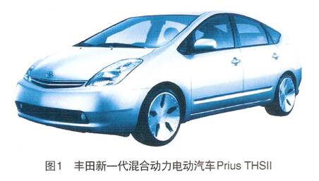 以作為混合動力電動汽車研發(fā)前沿的豐田汽車公司為例,所開發(fā)的混合動力電動汽車已達到實用化水平,自1997年所推出的世界上第一款批量生產的混合動力電動汽車Prius開始,其后又在2002年推出了混合動力面包車,該車混合動力系統(tǒng)采用了世紀首次批量生產的電動四輪驅動及四輪驅動力/制動力綜合控制系統(tǒng)。2003年,豐田又推出了新一代Prius,也被稱為“新時代豐田混合動力系統(tǒng)——THSⅡ”(見圖1),節(jié)能效果可達到100km油耗不足3L。從2004年開始,豐田公司向歐洲市場推出了一款新的LexusRX型豪華混合動力轎車。豐田公司計劃2012年全部采用汽油電力混合發(fā)動機,以提高燃油經濟性和降低排放污染。