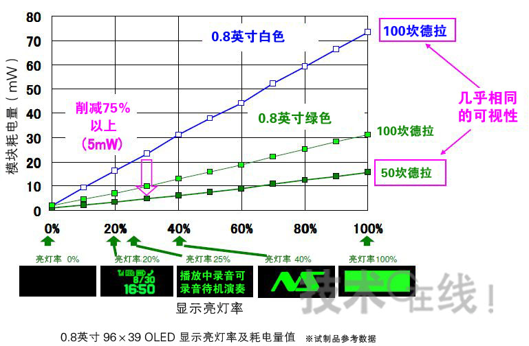 此次開發(fā)的有機EL面板的耗電量“與配備LED背照燈的液晶面板相當(dāng)”。日本精機首先試制了0.8英寸的綠色面板,與該公司原來同尺寸面板相比,“可視性幾乎相同,耗電量削減了75%”(日本精機)。該公司計劃利用此次的有機EL面板低耗電技術(shù),推動有機EL面板的普及。