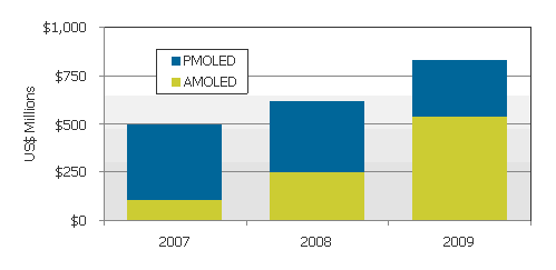 - 2009年OLED面板出貨金額達8億2千6百萬美元
