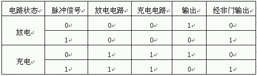 將A、B兩點(diǎn)與脈沖信號均接入與非門的輸入端,再經(jīng)一個(gè)非門輸出信號。這樣,就可構(gòu)成了一個(gè)邏輯關(guān)系。如表1。接到電池兩端,這里可以用一個(gè)開關(guān)TWH8778來連接。