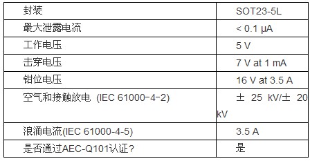 新的保護(hù)陣列在0V時具有16pF的低容值,在5V工作電壓下的泄漏電流小于0.1μA。器件使用廣為采用的SOT23-5L封裝,在生產(chǎn)過程中很容易進(jìn)行處理,0.7mm的超薄厚度可節(jié)省電路板空間。