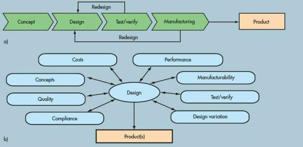 圖:(a)傳統(tǒng)PCB串行開發(fā)流程的設(shè)計周期長,信息共享有限,而成本持續(xù)上升;(b)并行開發(fā)流程允許多個開發(fā)程同步進行,有助于確保設(shè)計成功,避免延誤、額外開銷以及返工。