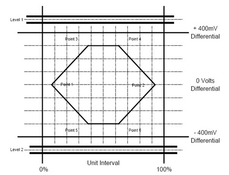 本次測試將主要驗(yàn)證產(chǎn)品上兩個(gè)USB高速主機(jī)接口的眼圖。對于USB2.0物理層的眼圖測試,USB IF在USB2.0 SPEC中有著明確的眼圖模板定義如下: